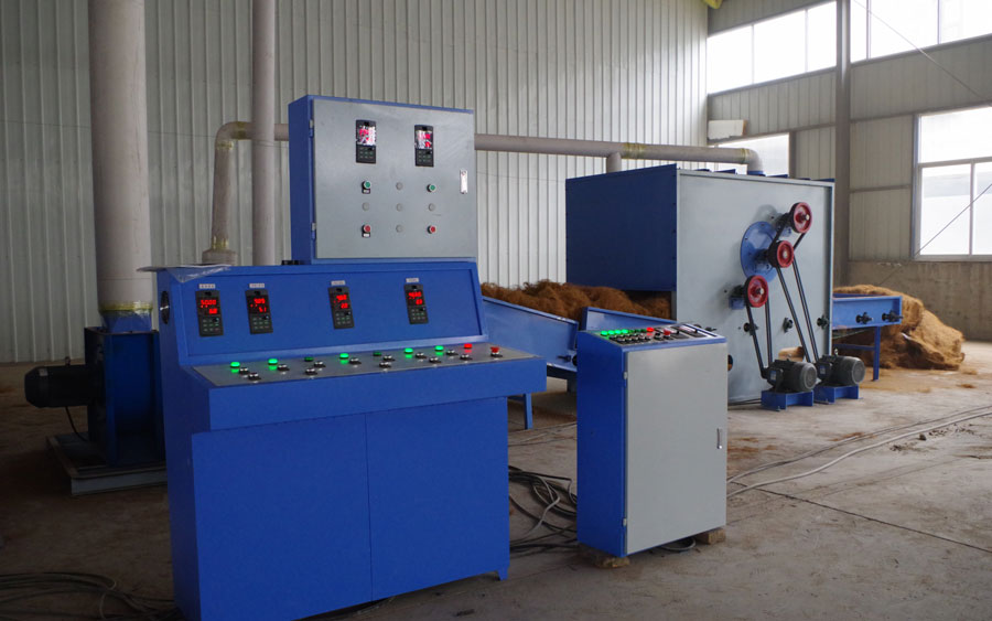 本生產線是利用椰棕纖維和低熔點環保纖維通過高溫熱風穿透粘合定型而成,所生產的椰棕墊具有獨特的三維立體結構,具有良好的透氣性。粘合過程不添加膠水,零甲醛,無異味,不霉變,符合國家環保要求,椰棕墊是床上用品、服裝家具、沙發高級的芯墊材料。