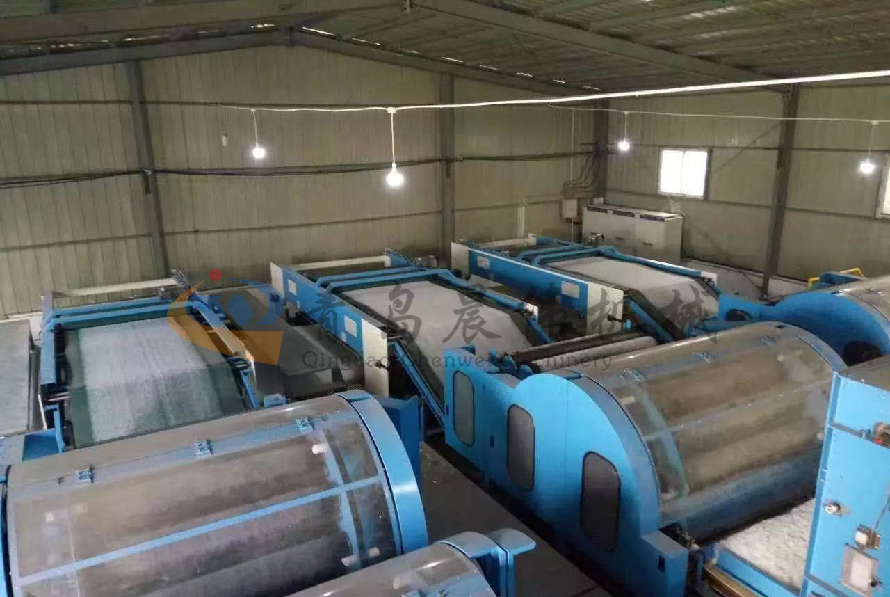 2. CWKS-1300 開松機:各種不同纖維被放入水平輸送簾,經壓棉輥和對輥羅拉喂入,經高速打手開松后經輸棉風機以適量的風量輸送纖維原料供后道工作使用;并配備橋式除鐵裝備。開松效果好,不易纏棉,產量高。